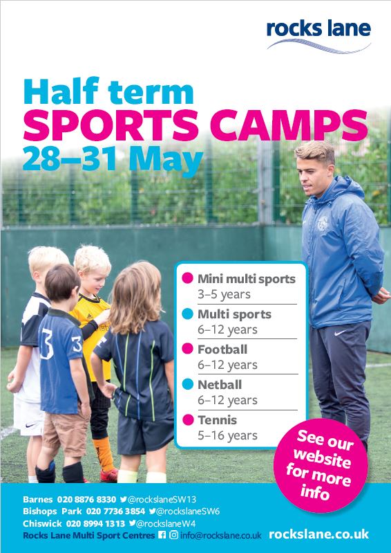 Holiday Camps will be held at Barnes, Chiswick and Bishops Park, 28th – 31st May. Contact centres for further details.